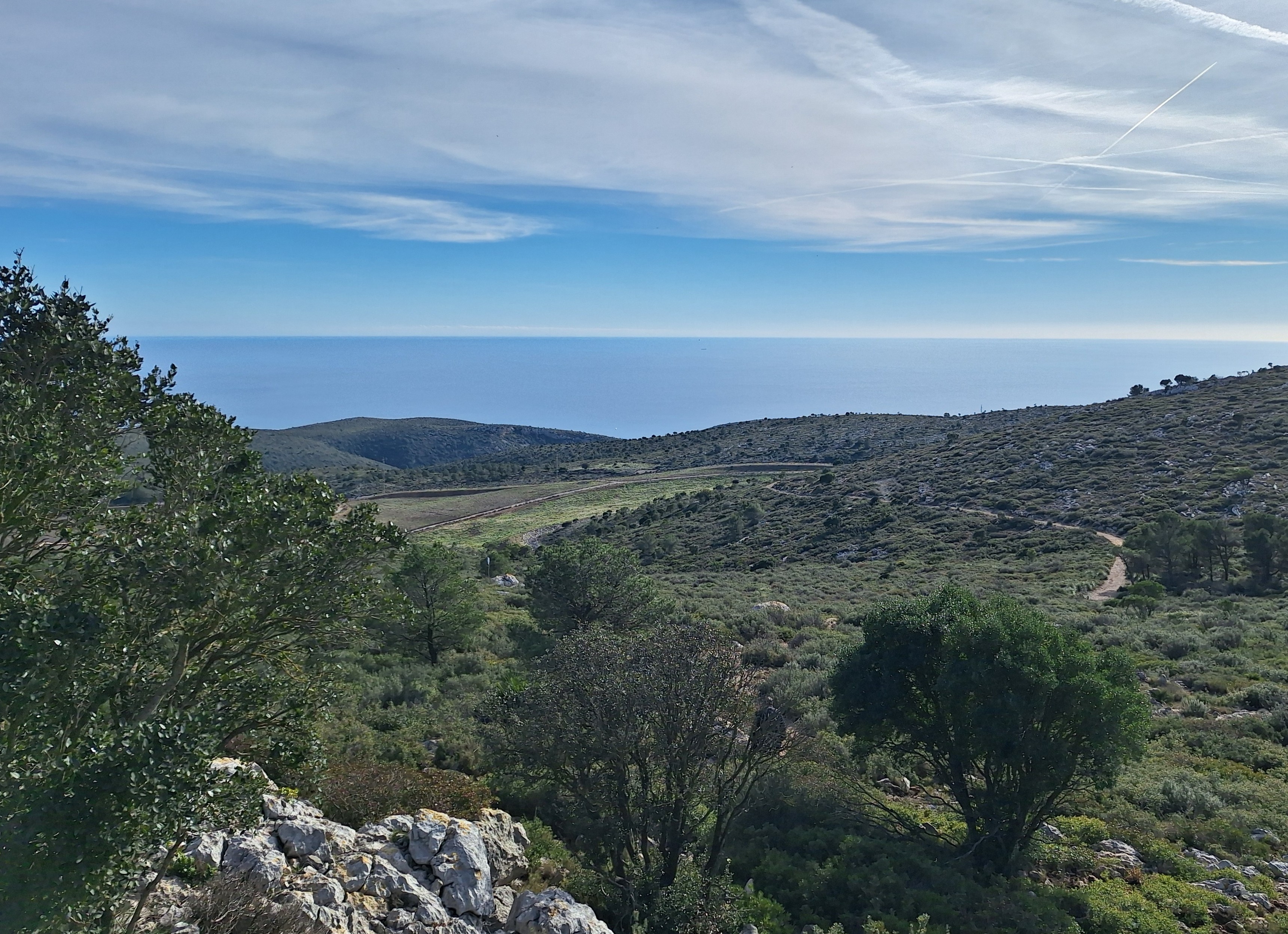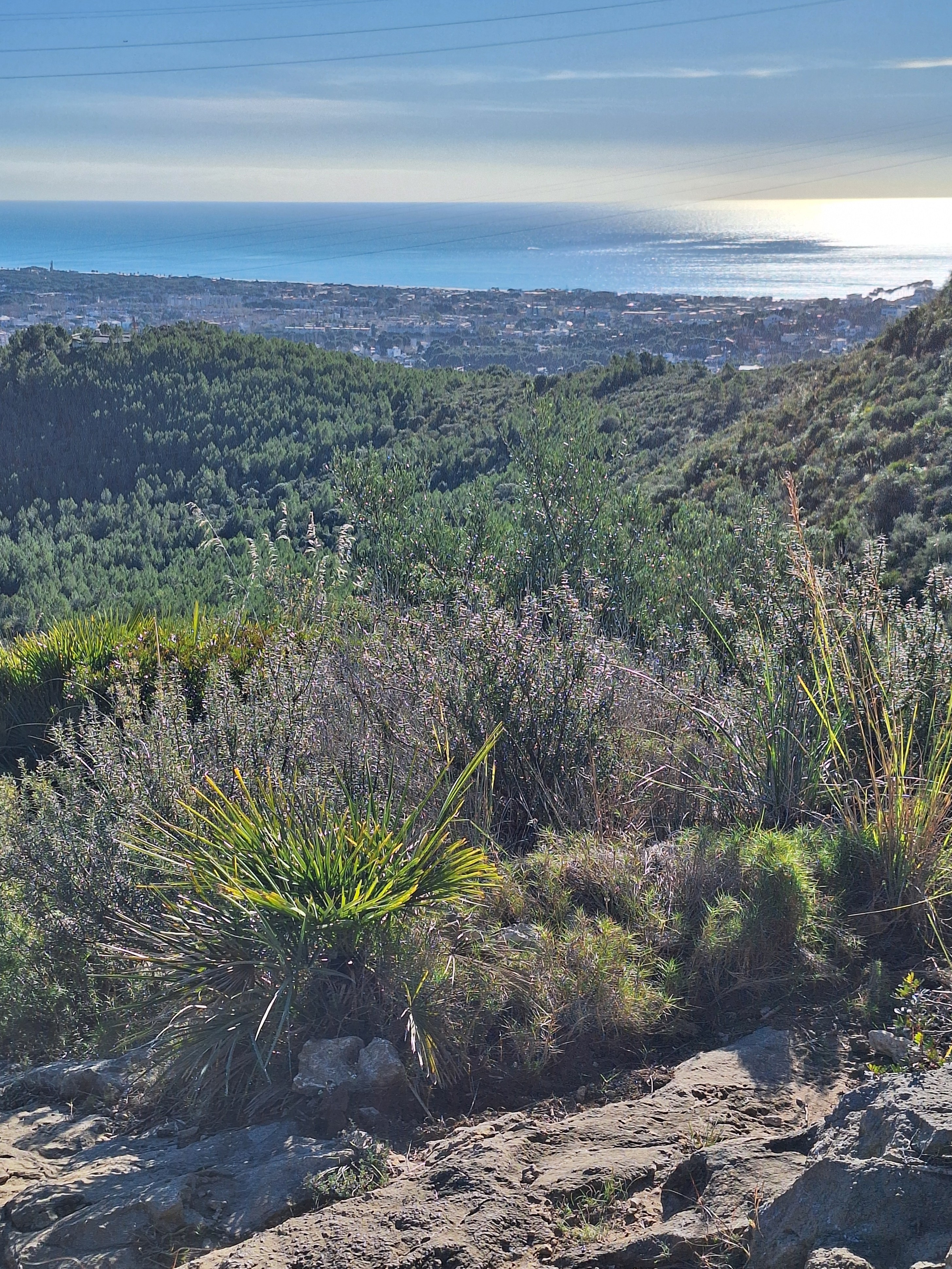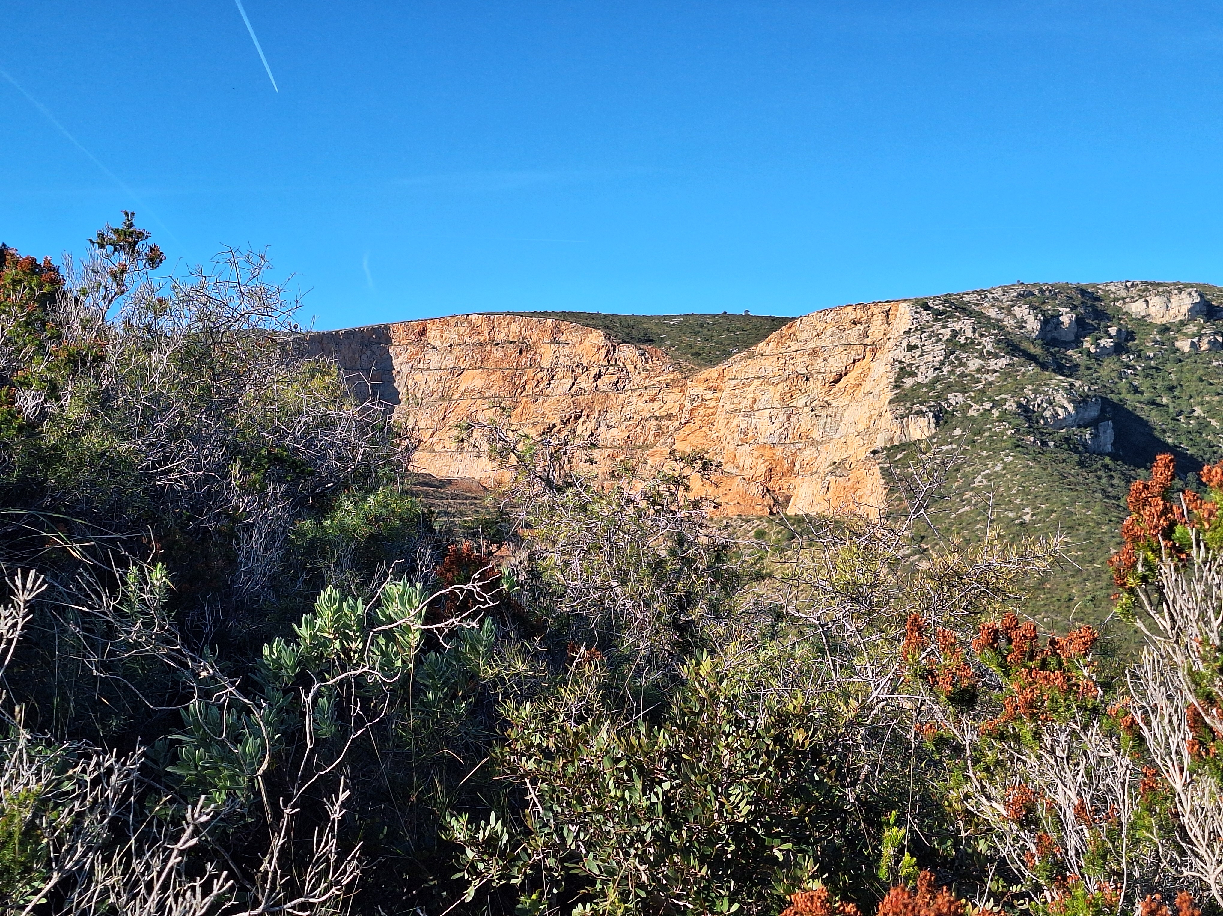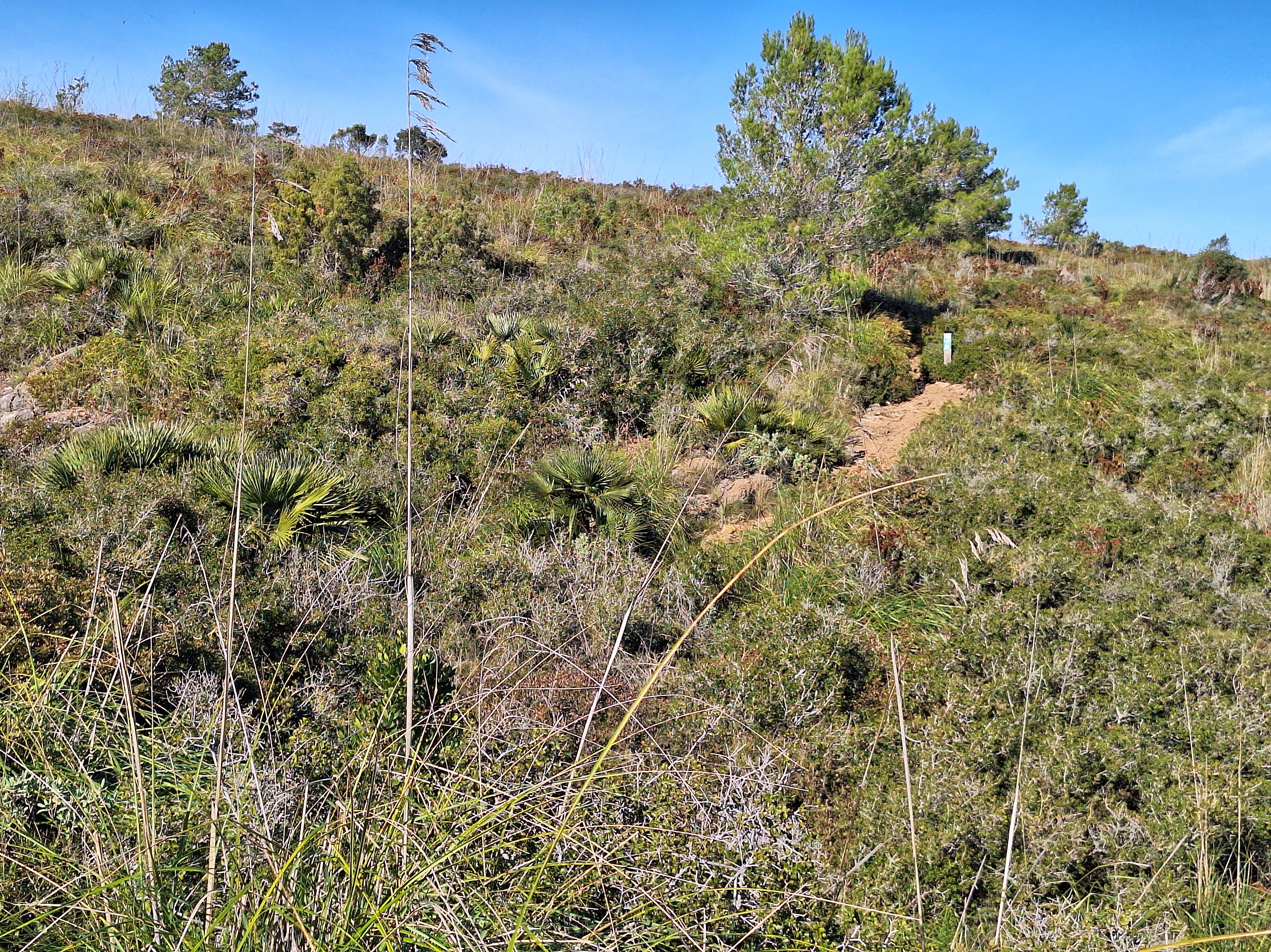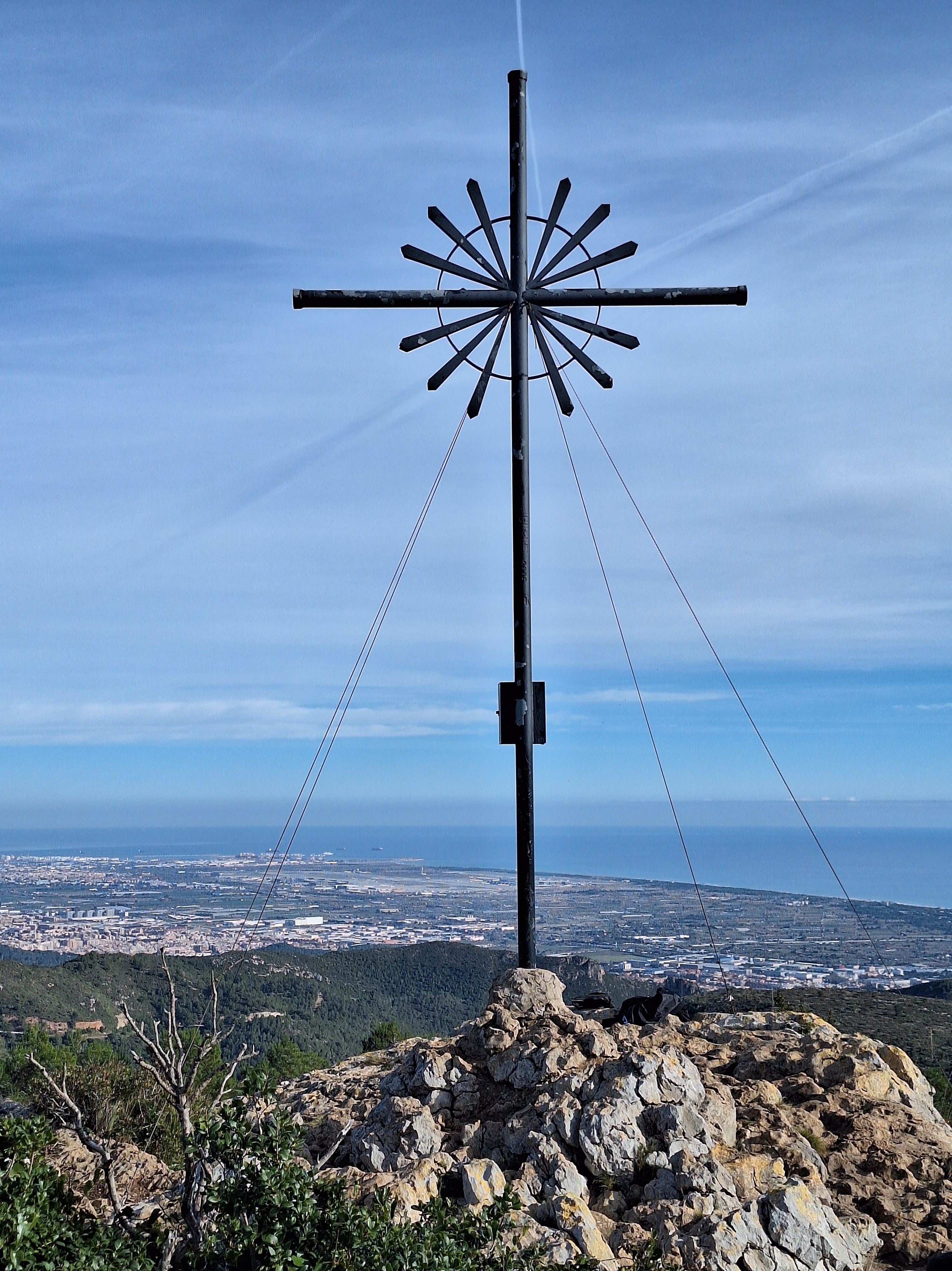 Seguiran els camins endinsant-se cap a l’altiplà de la Morella. El repetidor i el radar seran el referent per albirar la creu de ferro que assenyala el cim de 594 m. Passarem tota l’estona entre mates de carritx, margalló i una garriga densa i ben formada. Les panoràmiques a 360 graus es mantenen i acabes passant per alt el tall de la pedrera i l’abocador.